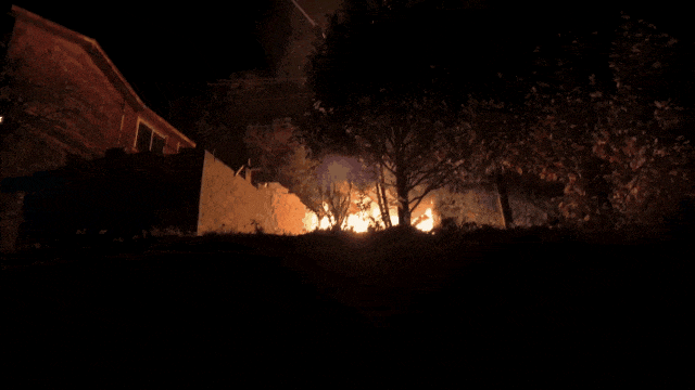 抬头发觉是一个民房屋屋顶起火了。