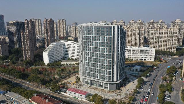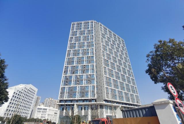 1 月 7 日上午,记者来到位于菊园新区嘉唐公路环城路口西北侧的项目现场,看到公寓主体建筑连绵起伏,灰白色配色的外墙简洁大方。项目负责人卢嘉昊表示,陈雨公寓总建筑面积约 3.2 万平方,呈" C “字形结构,共 21 楼层,可以提供出租屋 724 套。