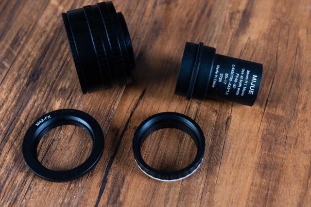 主镜头为4片2组对称结构。 , 焦段 恒定光圈30mm 像场覆盖的F11 44x33 中间画幅,原生 M42 通过安装不同的装接环,接口的微距镜头可以适应当前市场上的主流接口。