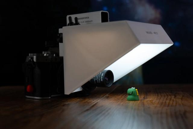 附带电池可方便地插入柔光箱顶部。 Type-C 接口,2000mAh 的 3.2v 磷酸铁锂电池寿命不起眼,中强度拍摄两块电池撑一下午没问题。但是如果是我们设计的,可以选择内置电池的柔光箱吗?