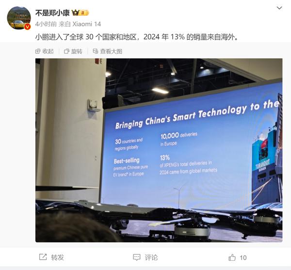 顾宏地,小鹏汽车总裁:2024年海外销售占13%