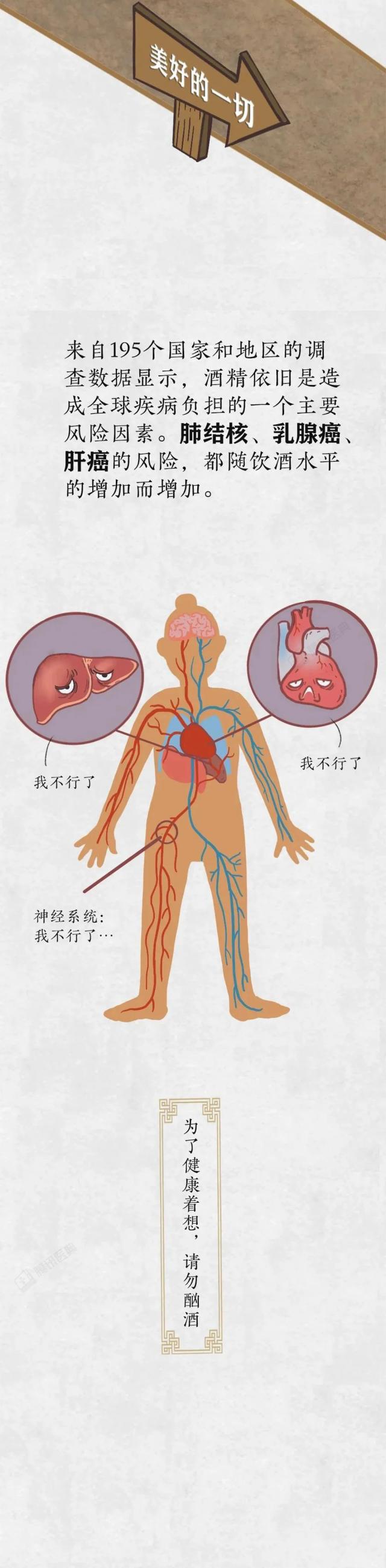虽然《中国居民膳食指南(2022)》建议成年人每天饮酒不超过酒精含量。 15g,但 2018 一年一度在权威医学杂志《柳叶刀》上发表的研究表明: