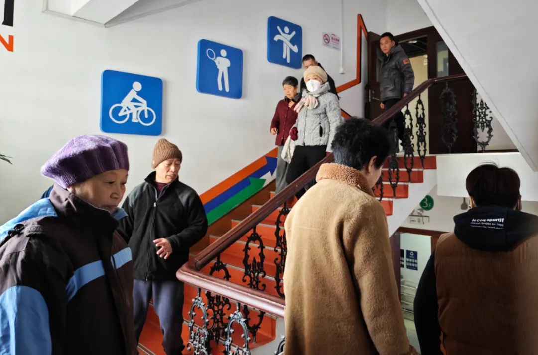讲座结束后,场馆内的工作人员立即投入到紧张有序的消防演练中。随着警报的传来,国学馆、图书馆、市民健身房和事务中心的工作人员迅速采取行动,组织市民有序从安全通道撤离。与此同时,办公空间的工作人员也在楼层负责人的指挥下迅速做出了回应。