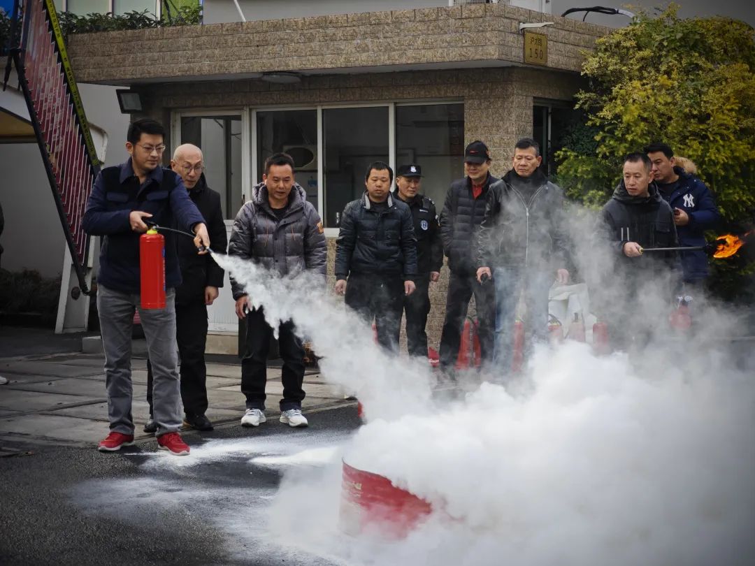 最后,所有参加演练的人都集中精力学习了如何使用消防水枪和灭火器,并进行了实际的灭火练习。