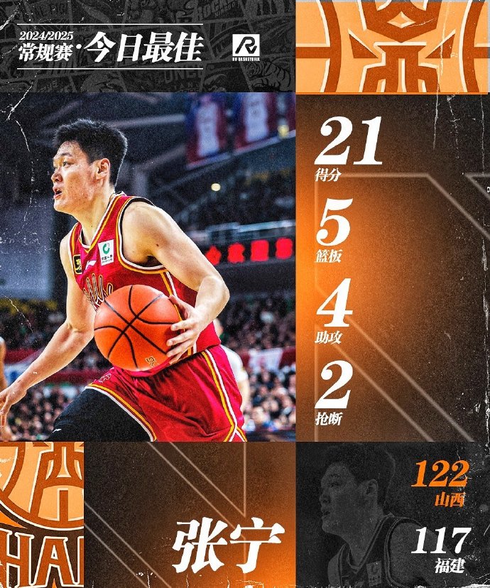 山西男篮逆转福建,张宁独得21分,两连胜。