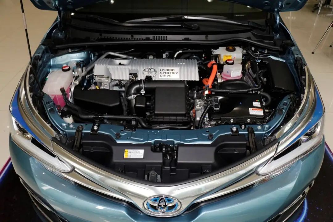 整个蓝色卡罗拉使用的是一个 1.8L 发动机,动力水平只有发动机。 99 马力和 142 Nm,匹配一套可以导出 136 马力和 207 电动机,10.5kWh 可以提供的电池组 55 纯电续航公里。