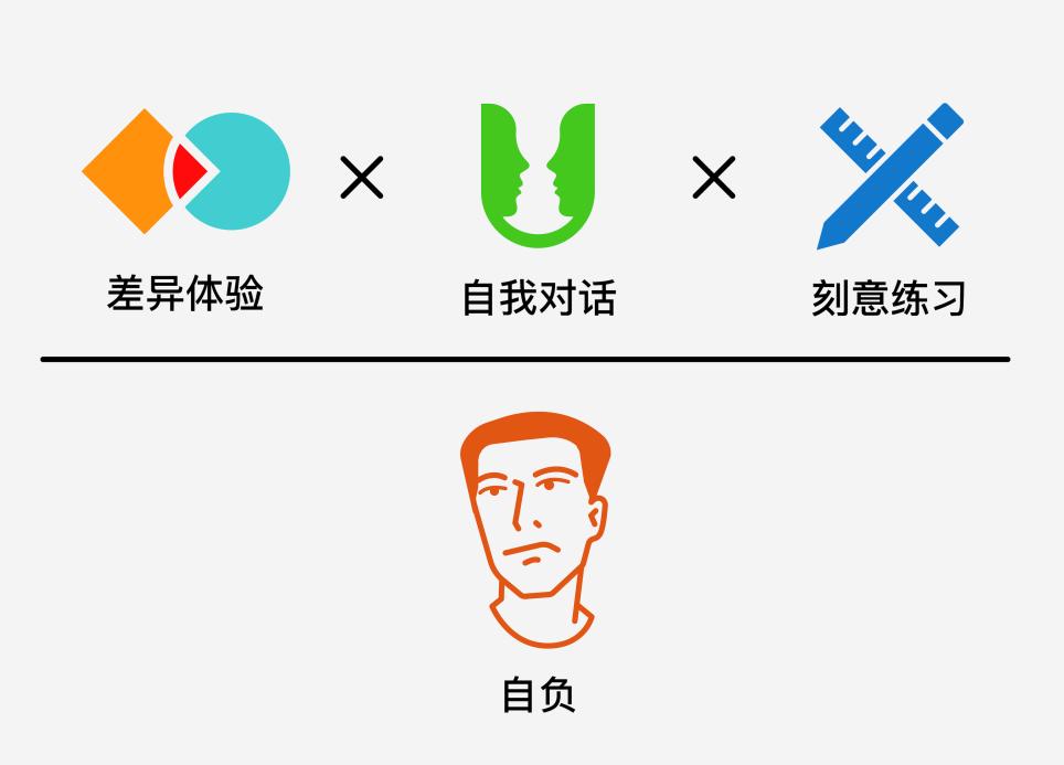 “自我超越=差异感觉”当然是×自我对话×刻意练习/自负】只是我个人总结的一个公式,每个人都有自己的成长方式和自己对成长的理解,我只是希望这个公式能激励你。