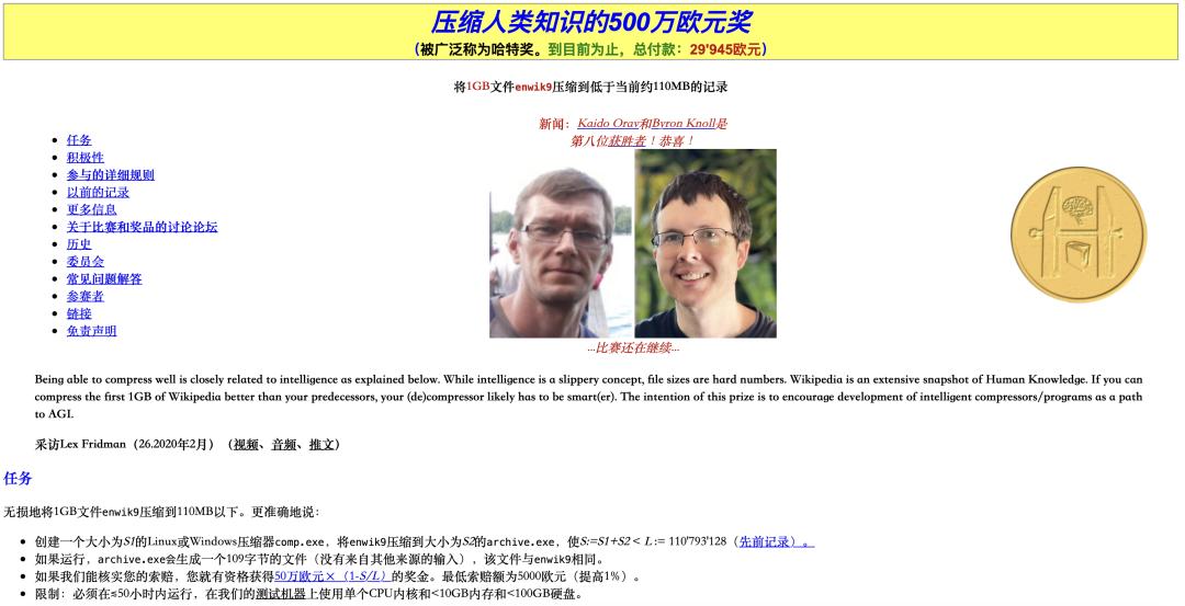 假如你能比这更小地压缩,那就意味着你的压缩方法更聪明,这场比赛的总奖金是50万美元,目前已支付超过29万美元。