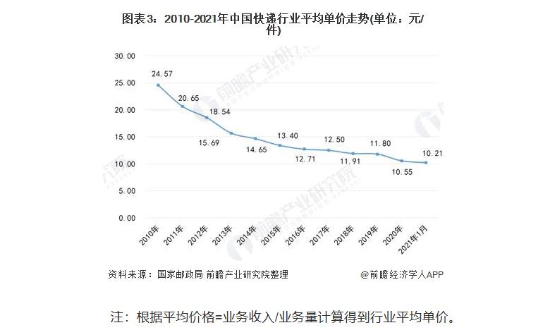 根据国家邮政局的数据,2011-2021年,快递行业的平均单价从24.57元下降到10.21元,价格下降了60%以上。