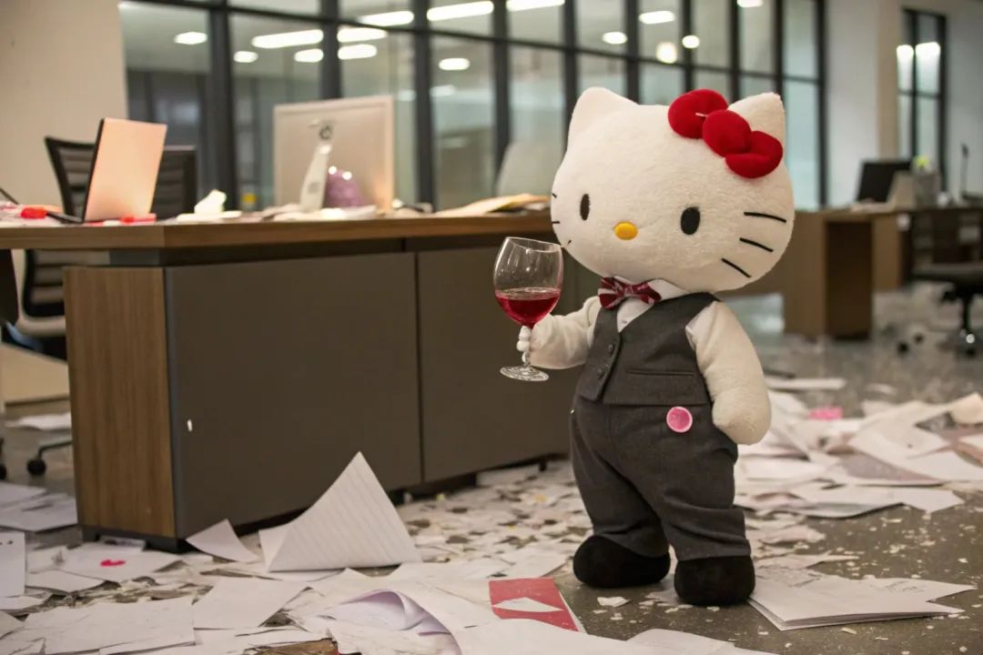 2024年下半年社交平台上最热门的图片之一是helloo kitty整顿职场,坐在起火的电脑前,静静地喝着咖啡,用大锤子砸办公室;另一种是“梦核”胶片风格,色彩丰富,对比度高,构图荒谬,被称为“梦幻模拟器”——这两种风格的照片都是由RecraftAI设计软件生成的,Recraft的预置风格来源于后者。Hard Flash”。