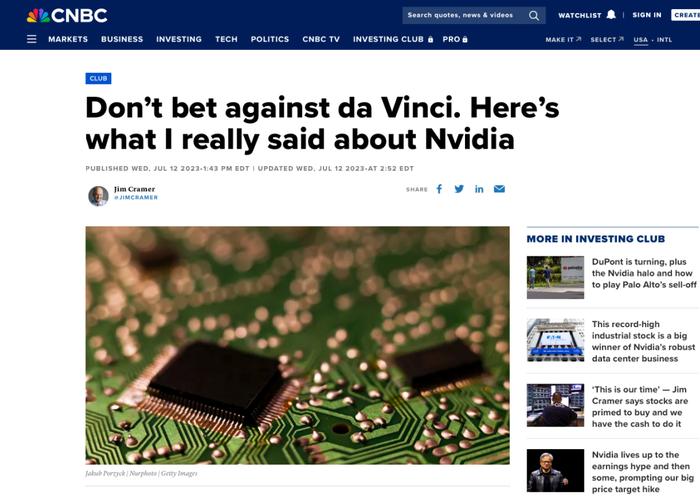 至少有一点可以肯定,克拉默对黄仁勋的高度赞赏绝对是发自内心的。多年来,他的基金一直在做更多的英伟达,所以他受益匪浅。克拉默甚至高兴地把他的狗命名为英伟达。