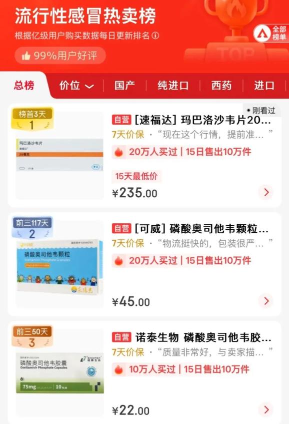 据报道,早在去年冬天,这种药物和奥司他韦就被消费者称为“流感神奇药物和网络名人药物”。当时玛巴洛沙韦在全国很多药店不断缺货,价格一度飙升至每盒599元。