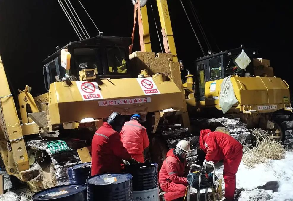 在寒冷的冬天,设备租赁公司现场技术保障组凭借精湛的技术和顽强的作风,全力保障全线48套施工设备的安全运行和故障处理,为项目的顺利进行提供坚实的支撑。面对极寒环境带来的低温、冻结等严峻形势,保障组推出了一套完整的 “耐寒护航” 措施:认真落实防冻保暖方案,并对其进行保暖。 “御寒加固”,为核心部件提供防冻保护,并配送耐寒物资,确保系统稳定运行。与此同时,保持全天候战备状态,快速响应故障维修,精确排障,保证施工链高效连接。