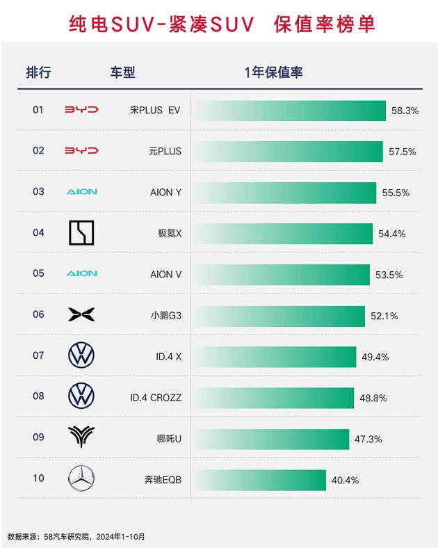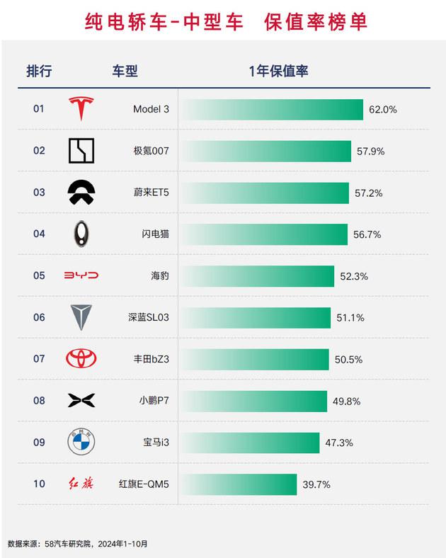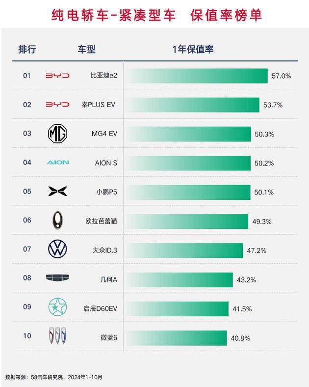 海外品牌都坐儿童桌? 2024纯电车保值率清单解读