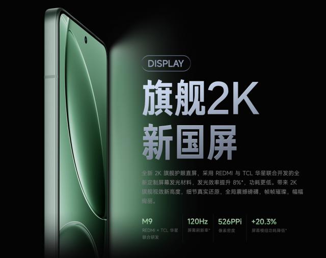 红米 K80 采用的是 6.67 英寸的 2K AMOLED 高清晰度显示屏,分辨率为 3200x1440px,画面更细腻,色彩鲜艳,对比度高,同时具有 HDR10 支持和 120Hz 高刷新率,全亮度, DC 变光和圆偏振光技术,可以减少蓝光辐射和闪烁,对眼睛更友好,高亮度的屏幕峰值 1800nits。