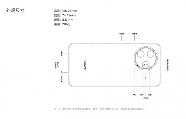 红米 Turbo4 选用塑料中框加玻璃后盖的设计,虽然在质感上略显不足,但也促使手机更轻,重量更轻, 203 克,厚度 8.06 mm,拿在手里比较容易。