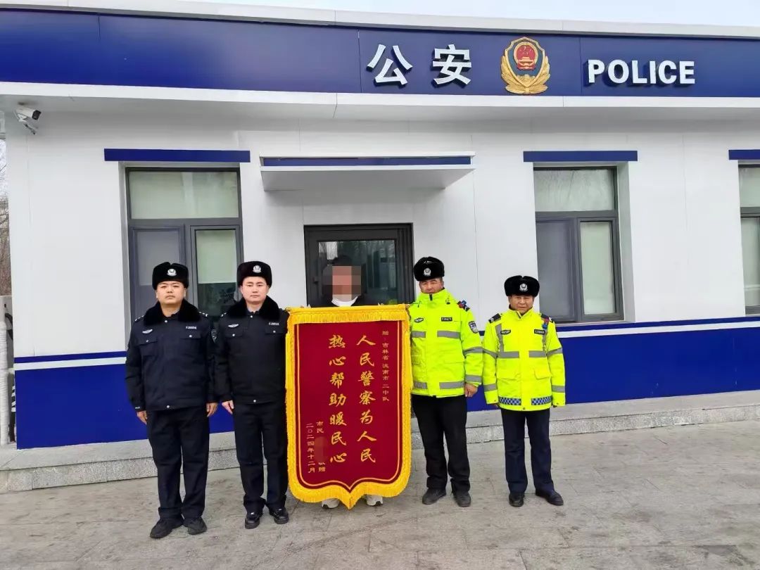 “人民警察为人民,热心帮助暖民心”的横幅