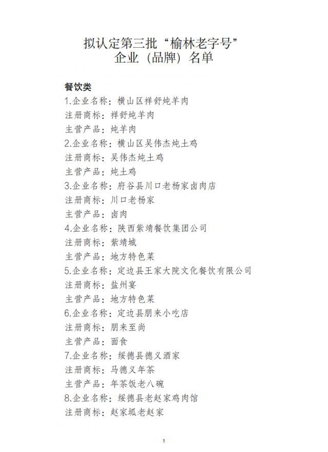 有关拟认定第三批 “榆林老字号”公司(品牌)