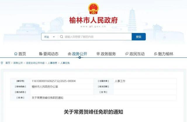 榆林市人民政府 2024 年 12 月 31 任职日期决定: