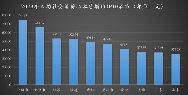 看,这是去年人均社会消费品零售额。 TOP10 省市。