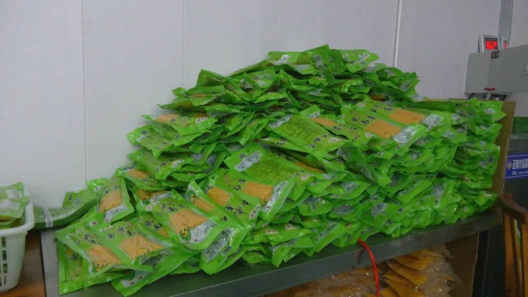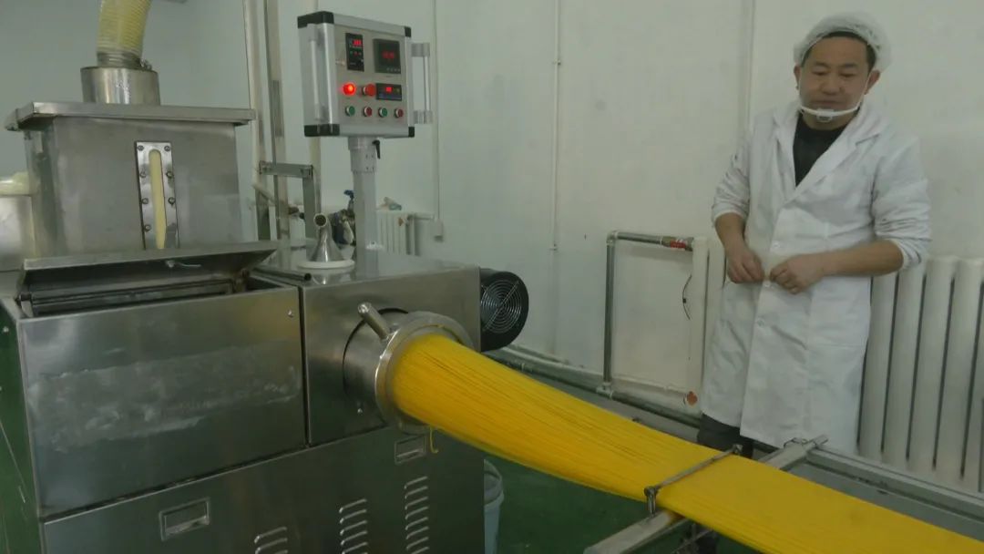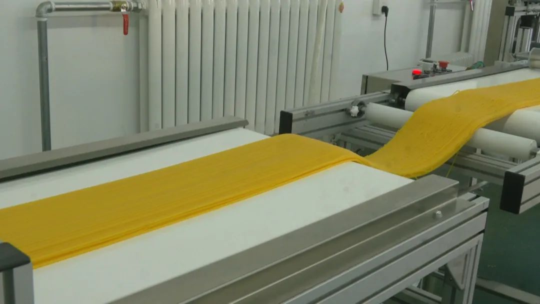 在生产车间里,一股浓郁的香味迎面扑来。随着机器的轰鸣声,工人们正在流水线旁边熟练有序地工作。一排排、一排排金色的面条从他们手中新鲜出炉。经过成熟、干燥、切割、塑料密封和包装,它们被送到全国各地。