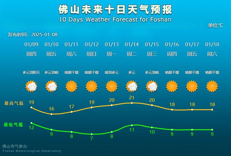 佛山市气象局1月8日预测,9日晚至11日,冷空气继续南进影响佛山,北风增至3至4级,阵风6至7级,平均气温降至3℃。~5℃,12日上午,最低温度约为7℃(山区低于5℃,部分初霜)。9日,我市气象局可能会发布严寒黄色预警信号,不排除升级严寒橙色预警信号的概率。(来源:佛山市气象局)