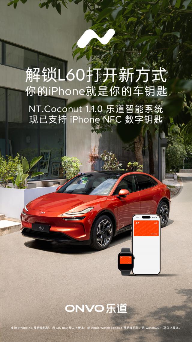 IT 世家 1 月 8 今天,乐道汽车发布了一条消息,NT.Coconut 1.1.0 乐道智能系统现在支持苹果 NFC 数字化钥匙功能。使用者可以 iPhone 或 Apple Watch 实现解锁 / 锁定 / 启动汽车,也可与家人、朋友分享钥匙。