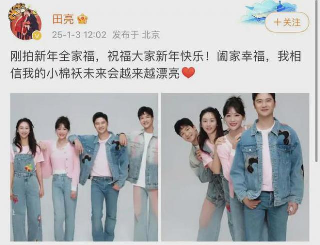 与此同时,田亮还发帖晒出新年全家福,写道“相信我的小棉袄将来会越来越漂亮”。