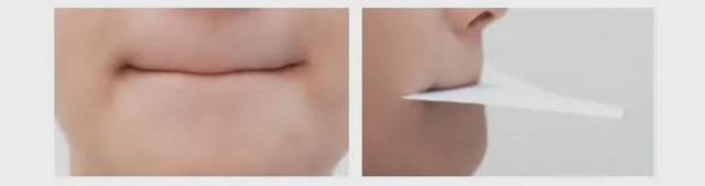 在嘴唇之间放一张非常薄的纸,嘴唇抿着纸,每天训练做 3 组,每组 10min~