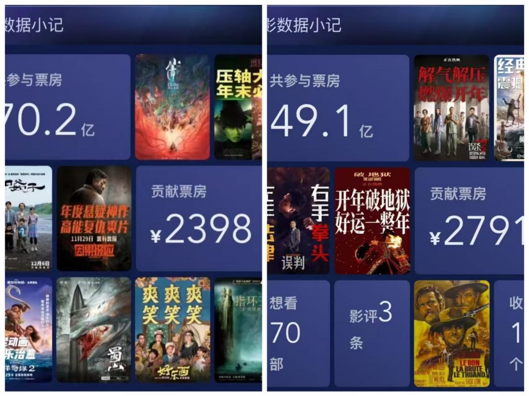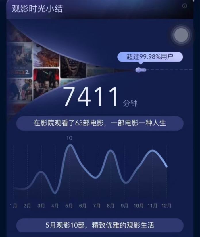 数以千计的影迷,基本上每年都要去电影院五次以上,最多的一批,甚至会去电影院看几十部电影,甚至上百部电影。2024年淘票制作的观影报告显示,单是淘票单一平台,他们每人可以贡献2000元。 票房,在电影院度过了七千多分钟。