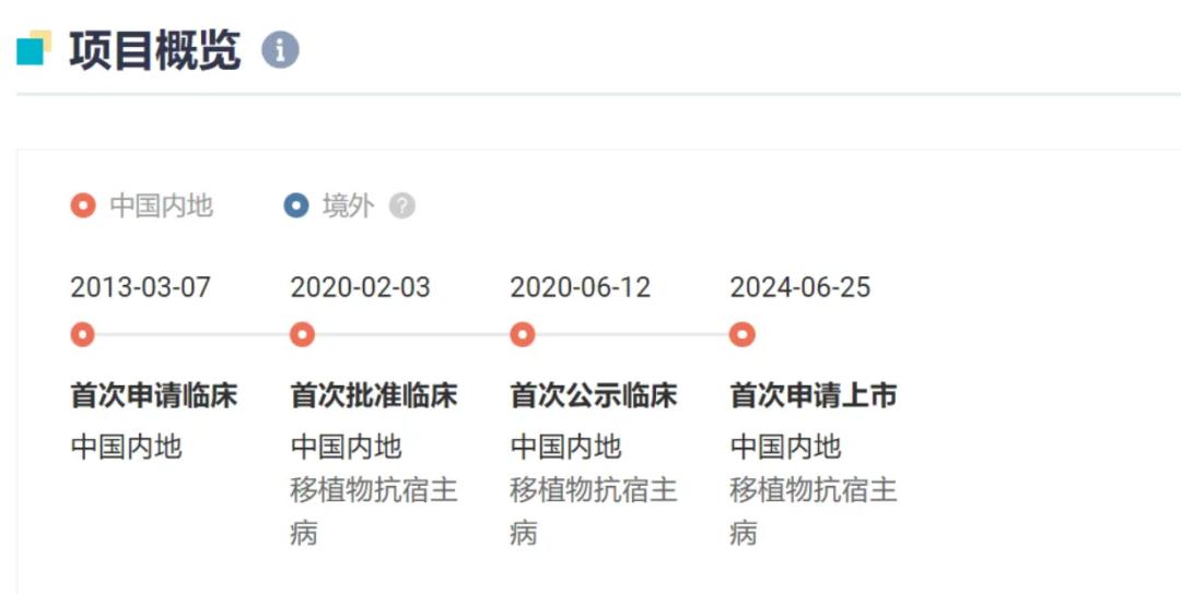 早在2013年3月,这种药物的研究人员就在国内提交了新药临床研究申请。(IND),然而,当时由于监管政策处于起步阶段,临床试验许可直到2020年6月才获得。之后花了4年时间才在2024年6月被药品评审中心列为优先审批,最终于于同月25日正式提交了注册上市申请。(NDA),出现在受理队列中。
