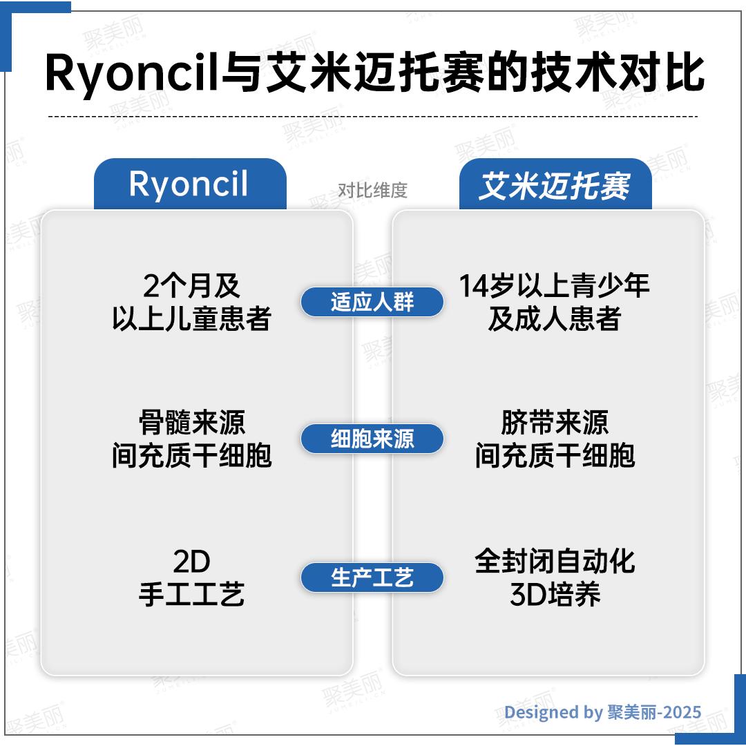 而且从下图可以看出,与Ryoncil相比,艾米迈托赛有三个显著的技术优势:
