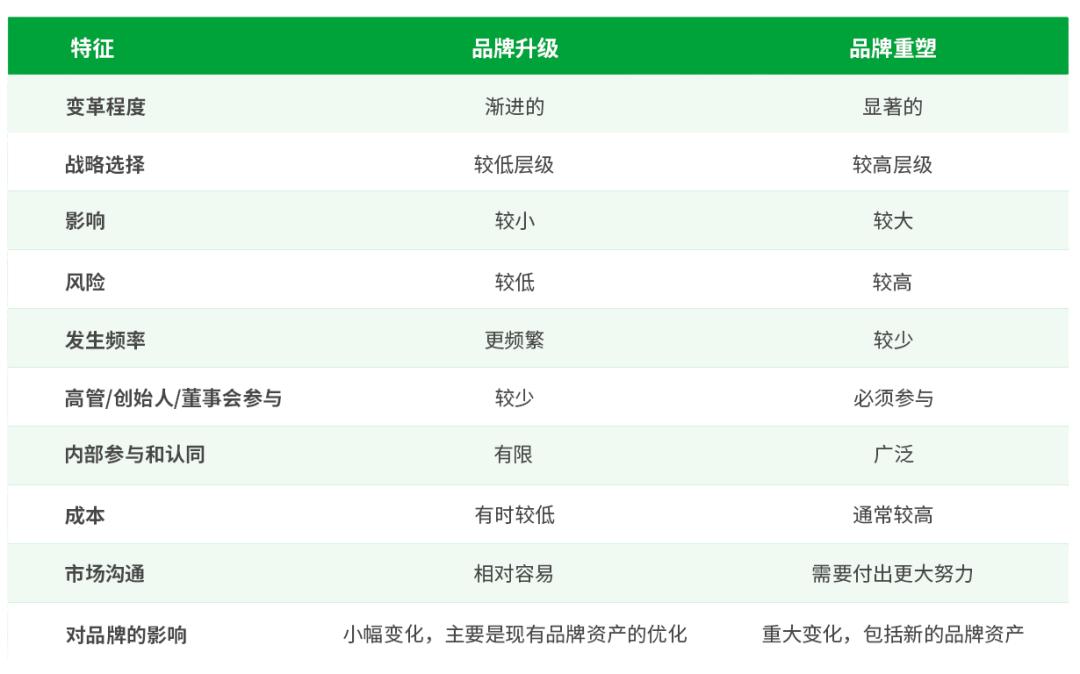 那么我们应该如何具体选择呢?让我们回到开始,了解品牌升级和重塑的共同点和区别,以及创新品牌应该在什么情况下做好准备,如何做出选择。