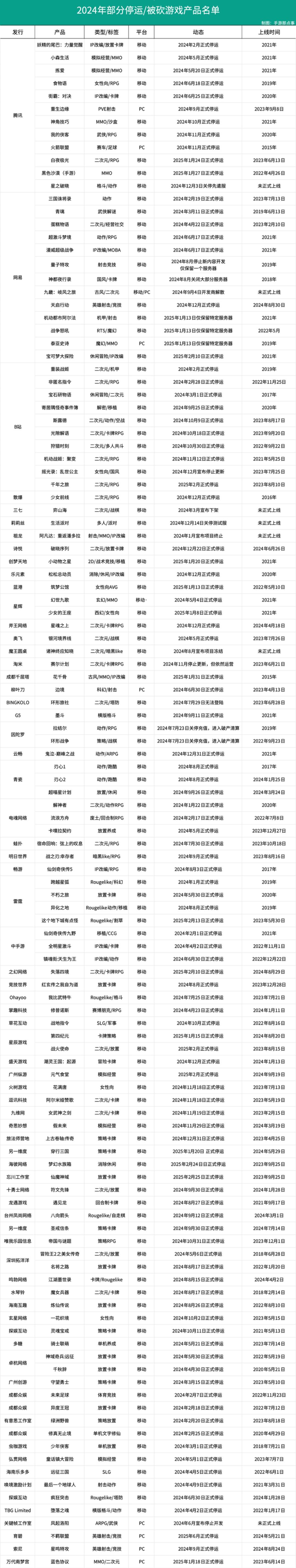 不但大量已经上线的产品被关闭,2024年还有许多游戏甚至没有持续到上线,其中很多还来自大厂。