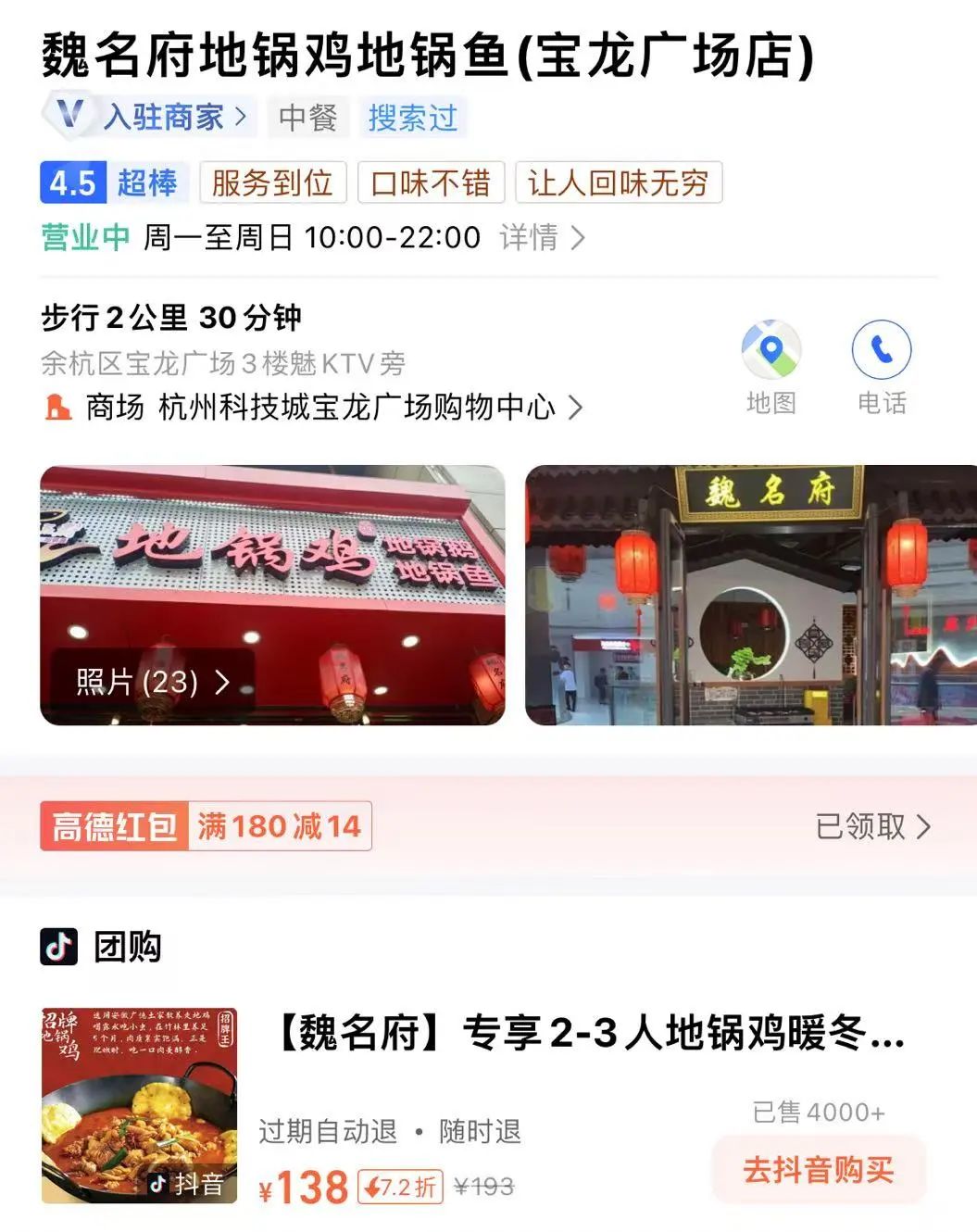 这次世超高德仔细翻了翻,倒也不是所有的店都有抖音团购,大部分还是高德自己的本地生活业务。