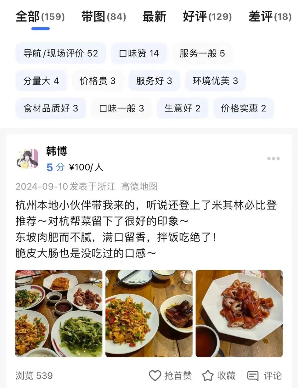 因为与公众评论、小红书等平台不同,高德缺少种草的内容特性,应该很少有人会去高德,去查一家餐厅到底好吃不好吃,还是某个景点的策略?