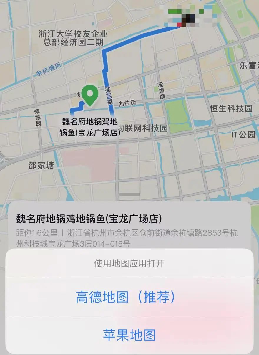 相应地,如果我在抖音上搜索这家餐馆,导航时会优先推高德地图。