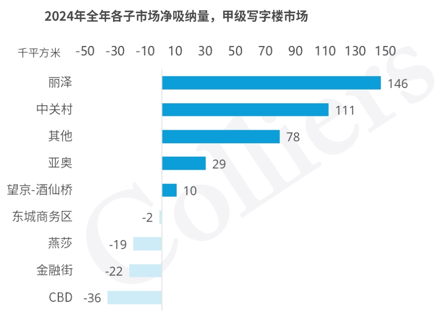 好消息是,去年第四季度房租逐月减少。在企业搬迁整合和国有央企需求的支持下,全年市场需求达到30万平方米,比2023年增长244%。