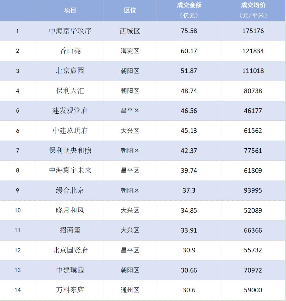 年营业额超过30亿元的项目有14个,集中在西城(1)、海淀(1)、朝阳(5)、昌平(3)、大兴(3)、通州(1)。