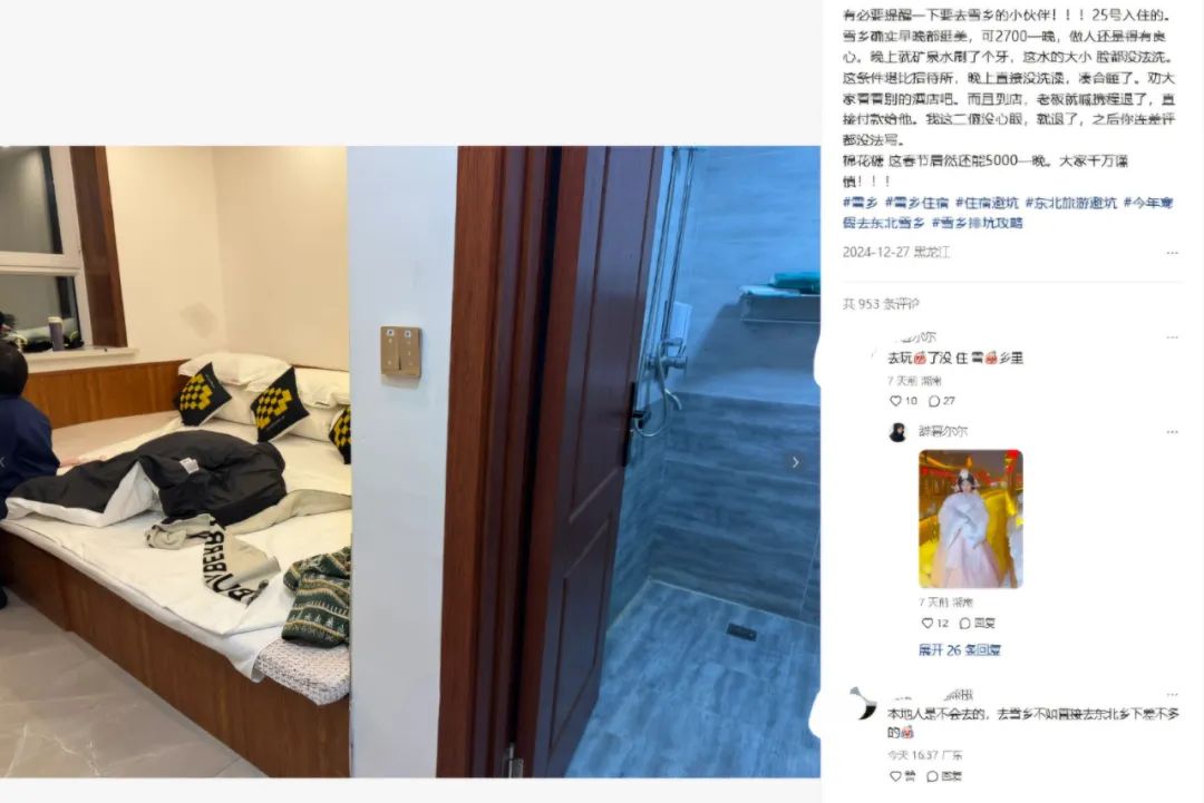 每年冬天,黑龙江雪乡的住宿费用都会成为热门话题,今年也是如此。