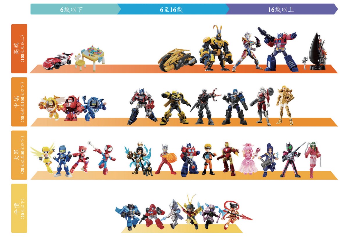 其中,奥特曼系列贡献最大,2023年贡献收入5.6亿元,占总收入的63.5%;二是变形金刚,贡献1.3亿元,占14.3%。