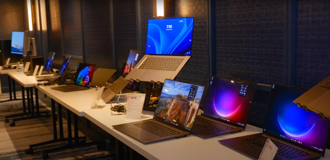 2024年定义AI PC联想,这次又带来了一系列“各种屏幕”的PC,包括带屏幕的键盘,上下两面都有屏幕。在这些屏幕中,最新奇的还是卷轴屏,笔记本屏幕可以向上拉申,属于程序员的敲代码神器。另外,联想还带来了一套旅行服,包括手环和颈链。用户只需要语音交互就可以提问和拍照,简直就是去年的AI。 实用版Pin。