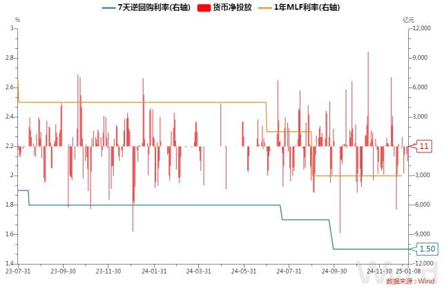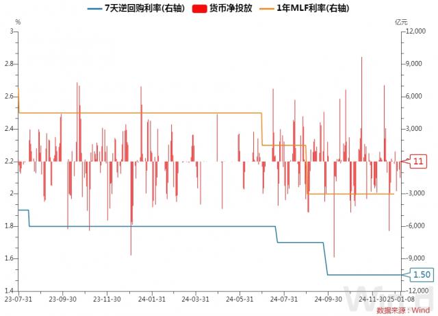 央行 1 月 8 日以固定利率、数量招标方式进行 11 亿元 7 天期逆回购操作,操作利率 1.50%。Wind 资料显示,当天无逆回购到期。