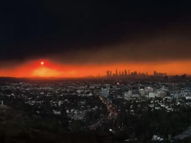 从太空来看,你会觉得美国加州刚刚打了一场“战争”,天空被暗红色的烟雾覆盖,火灾到处都是废墟,甚至烧出了“火风暴”和“火积云”,比加沙和巴赫穆特还要惨烈,好像被核弹打了一顿。