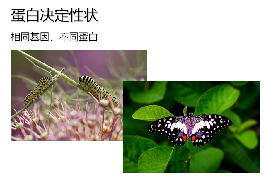 蛋白质决定特征:相同的基因,不同的蛋白质,完全不同的特征。