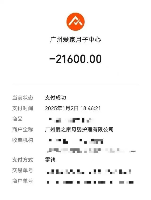 据极目新闻报道,1月8日,上海王先生告诉记者,他妻子的预产期是2025年7月。因为之前有朋友住在爱家子曰中心,品牌口碑不错,他们打算在上海浦东新区选择这个品牌的店铺。2024年12月底,夫妻俩看到品牌经销商工作人员发布“涨价通知”的消息,前往店内现场观看,2024年12月31日付款,28天服务期,总价2.36万元。他的妻子原本计划在2025年7月入住月子中心。不过,一月七日,店内销售人员在朋友圈公开发布消息,他们才知道店内关门了。