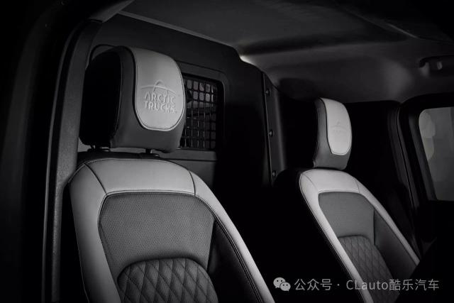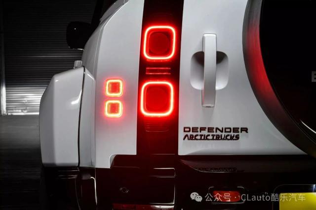 其它视觉变化包括嵌入多个内容。 Arctic Trucks 标志、延伸铝侧踏板、红色拖车钩和增大挡泥板。在可选配件中,有责任在尾门安装全尺寸备胎和车顶。 LED 灯。