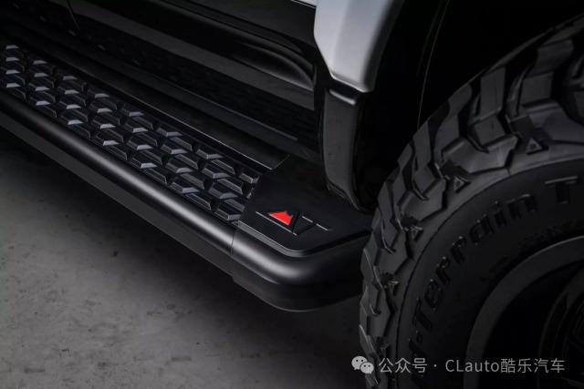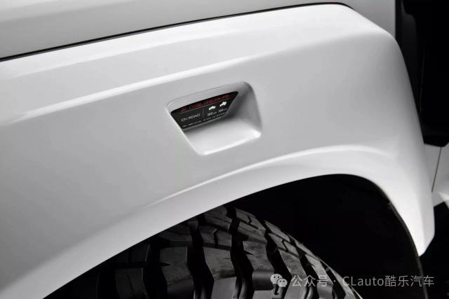 由于该套件轮胎明显增大,配合巨大的前后翼子板升级。改造后的翼子板可以选择相同颜色或黑色的车身,上面显示每个地形的正确胎压。
