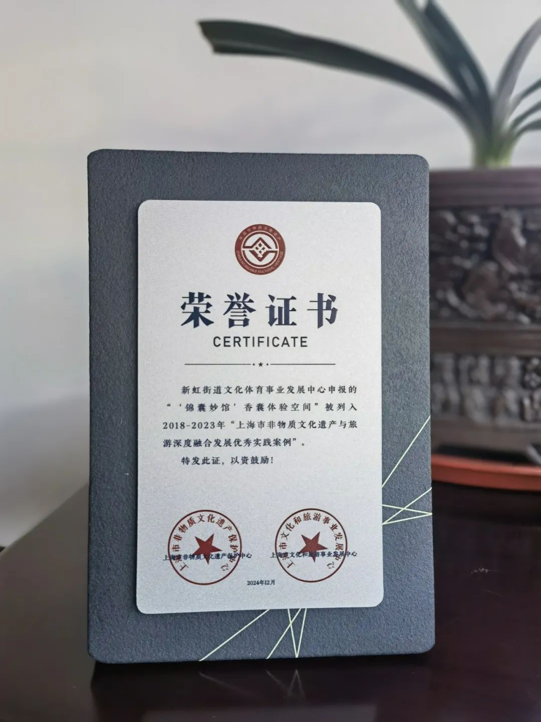 闵行区新虹街道非遗传承基地锦囊妙馆在最近举行的2024上海非物质遗产大会颁证仪式上脱颖而出,成功入选2018-2023年“上海市非物质遗产与旅游深度融合发展优秀实践案例”,也是闵行区唯一入选的体验基地。