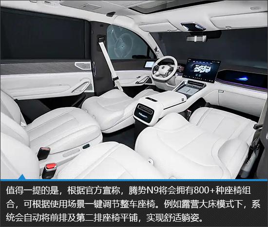 总体而言,腾势 N9 内饰更注重豪华与实用的完美结合。同时在设备水平上也不逊色于同级别的对手,800。 千变万化的空间使汽车完全成为一个“移动的生活空间”。